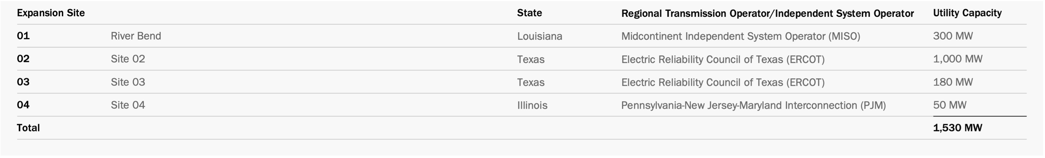 Expansion Sites: 1,530 MW of Capacity Under Development